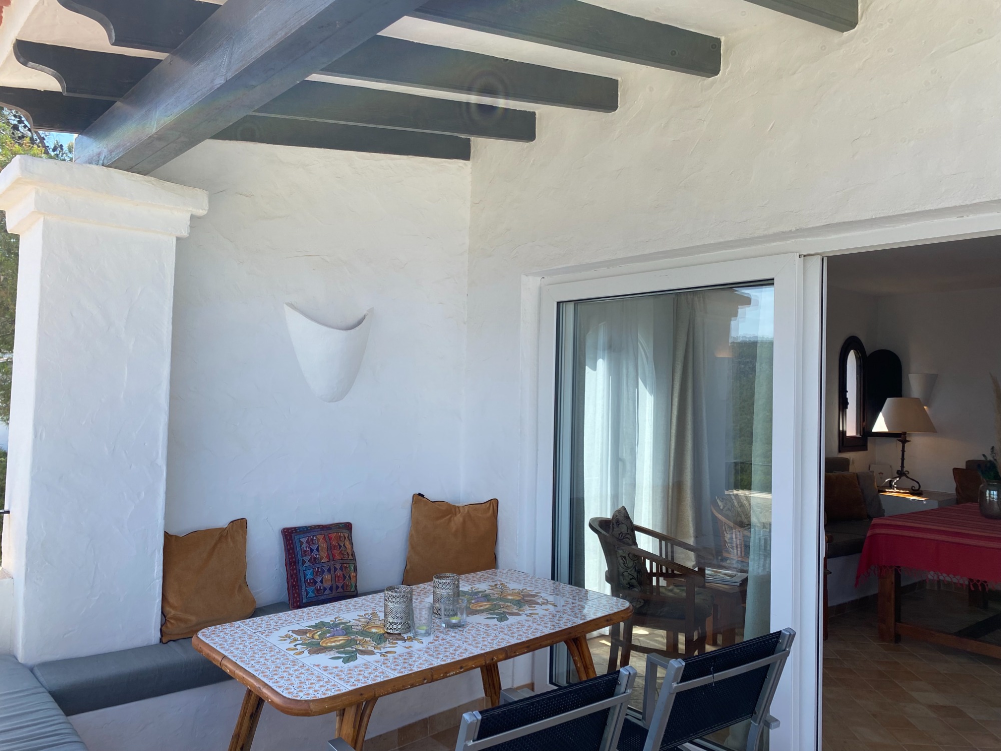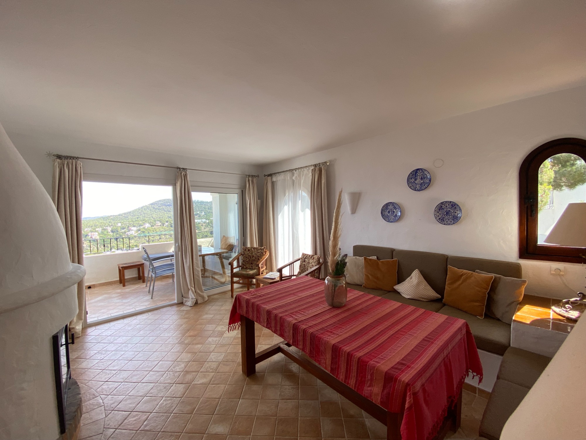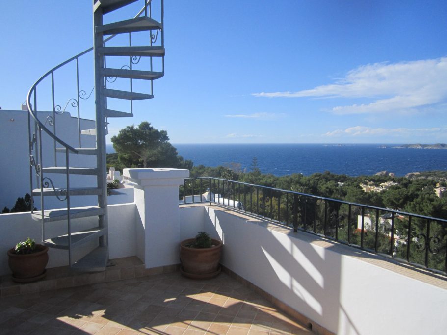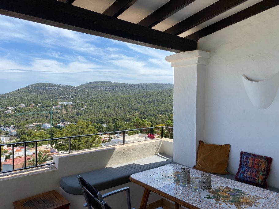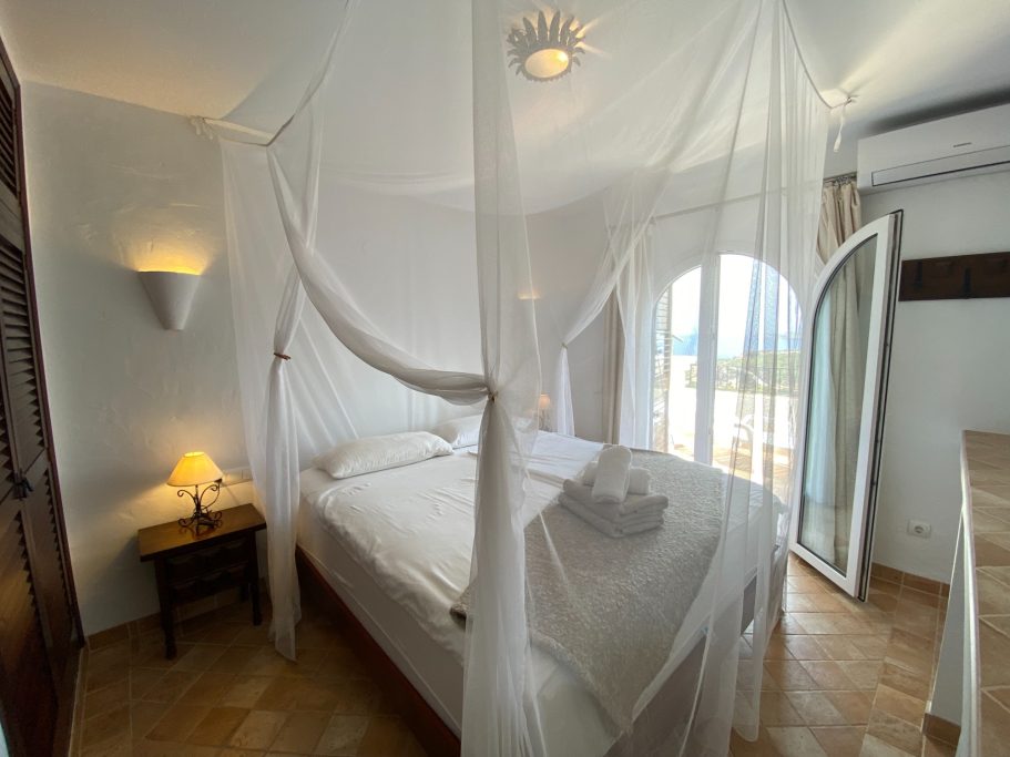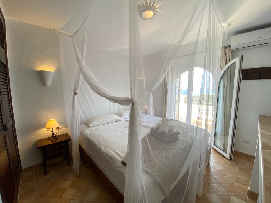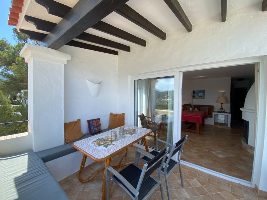 Piso de dos dormitorios en Cala Vedella. Dos dormitorios dobles y dos baños. Cocina equipada y salon con acceso a la terraza. El inmueble goza de unas increibles vistas al mar y a la playa.